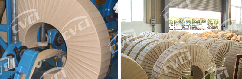 鋼板在剪切配送過程中,一般會根據(jù)客戶要求分切成不同寬度的窄條帶,通過短途運(yùn)輸至目的客戶。在貯運(yùn)期間,受環(huán)境影響易發(fā)生銹蝕和機(jī)械損傷,故需要防蝕包裝。皺紋夾絲復(fù)合紙通過其獨(dú)特的基材和良好的阻隔性可以防止鋼板在貯運(yùn)過程中銹蝕的發(fā)生;同時該產(chǎn)品具有一定的伸長率,尤其適合于窄帶板材的纏繞包裝 。